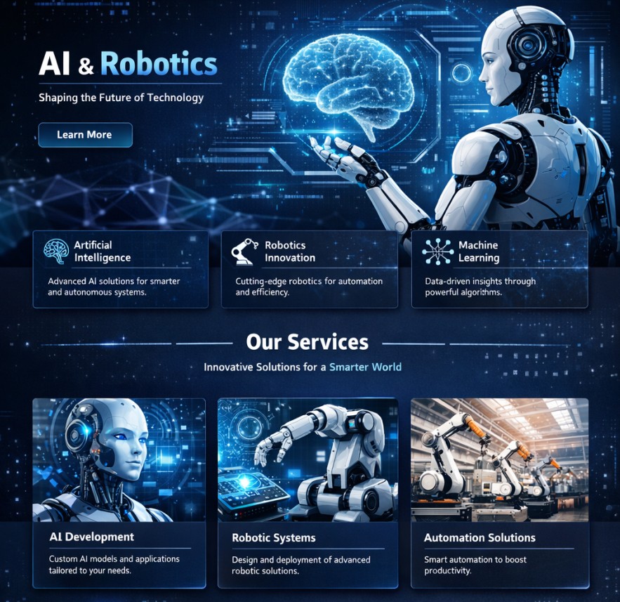 Our company provides advanced Artificial Intelligence (AI) and Robotics development and technical support solutions for modern digital platforms. We help businesses integrate intelligent technologies to improve automation, performance, and user experience.